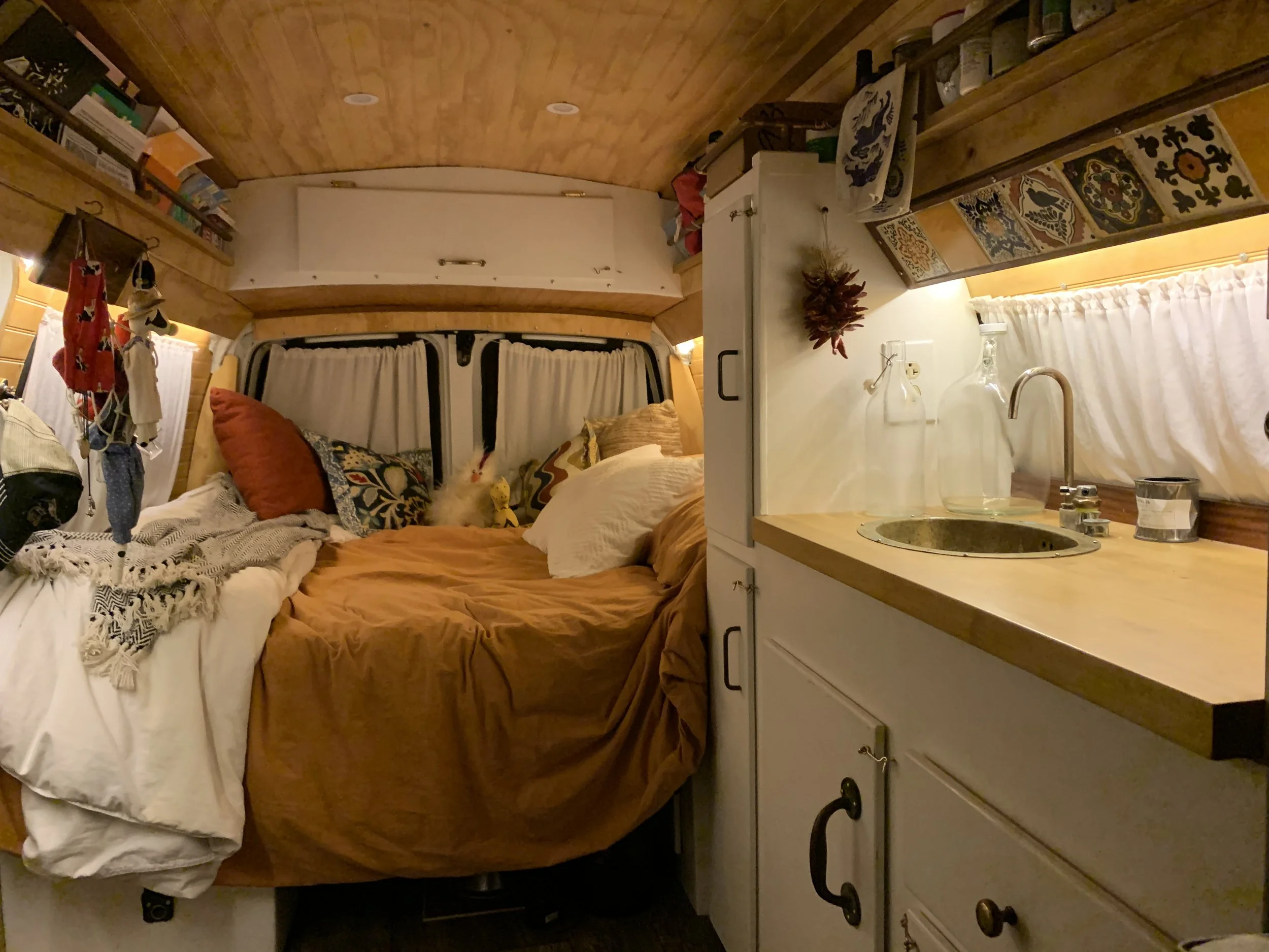 in 2018, faced with the prospect of graduating college and grand uncertainty about where i wanted to be and what i wanted to do with my life and time, i bought a van to build out so that no matter what i would have a place to call home. i was most excited about the building process, maybe more so than living in the van itself, and spent months working on it as much as i could to turn it into a dreamy little ships cabin on wheels.